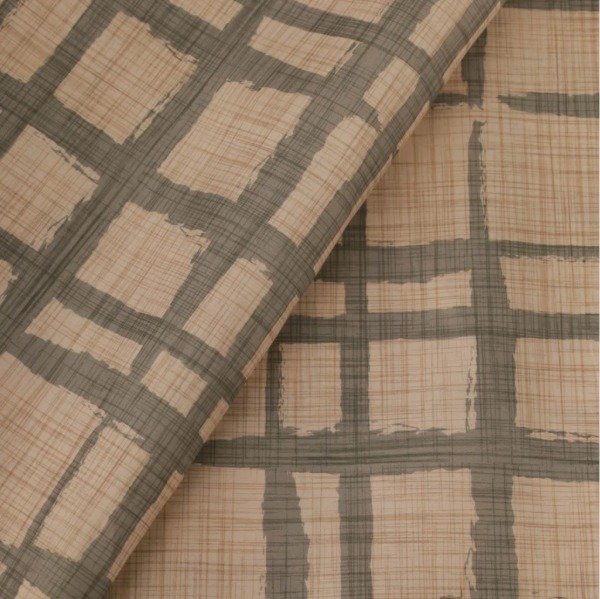 Gabardina acrílica color beige con diseño cuadriculado en color verde safari de un grosor de 1,5 - 2 cm de ancho.